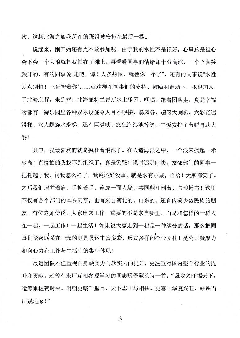 特等獎獲得者為原料車間譚承良的《晟運之旅》,簡潔流暢,描寫生動,扣人心弦。一等獎獲得者為造氣車間譚旭的《人在晟運》,詞雅文練,敘事抒情,辭意從容。